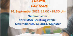 Dienstag, 16. September 2025 Referentin: Katja Lüttel, MS Nurse Fatigue gehört zu den häufigsten, aber auch am meisten unterschätzten Symptomen bei Multipler Sklerose. Viele Betroffene stoßen dabei auf Unverständnis. In …